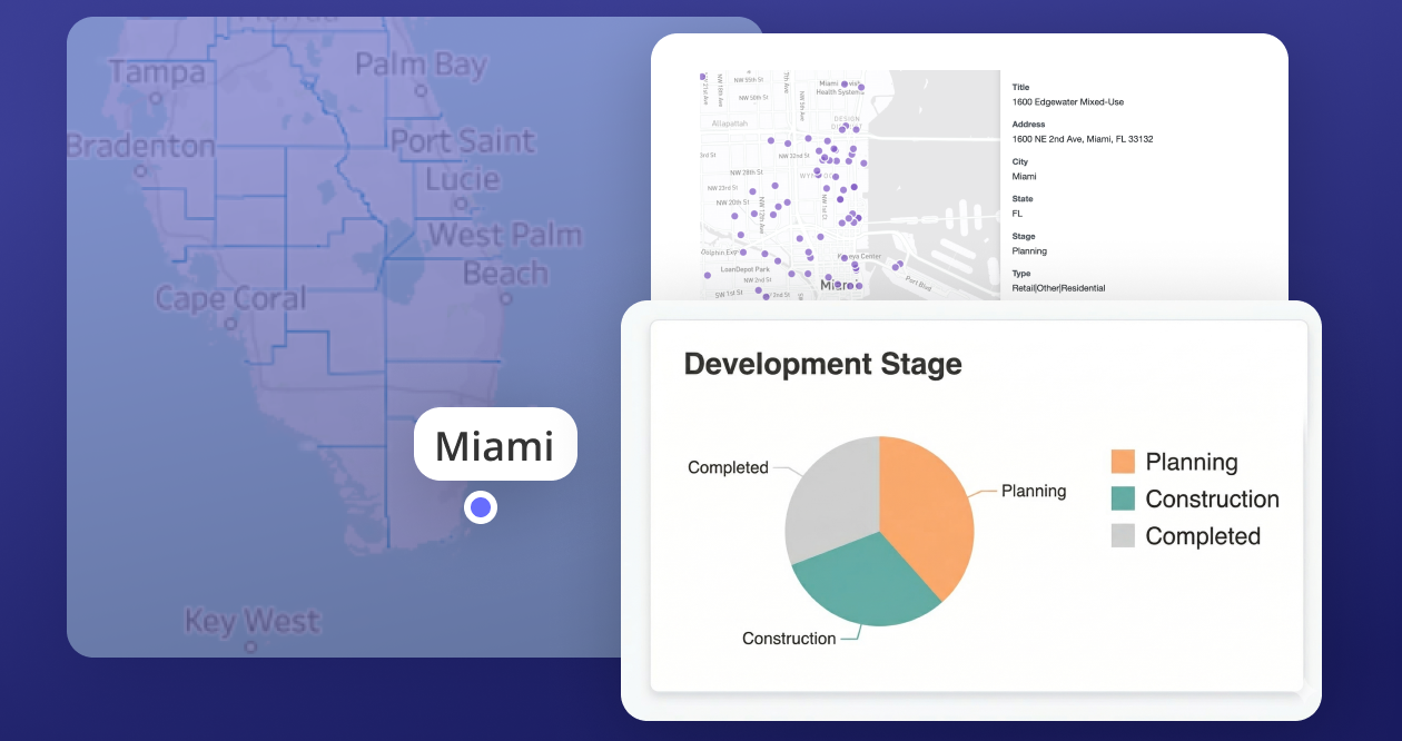 Access information about planned, in progress, or recently completed real estate development projects to make data-driven decisions about acquisitions, site selection, remodeling, and more.